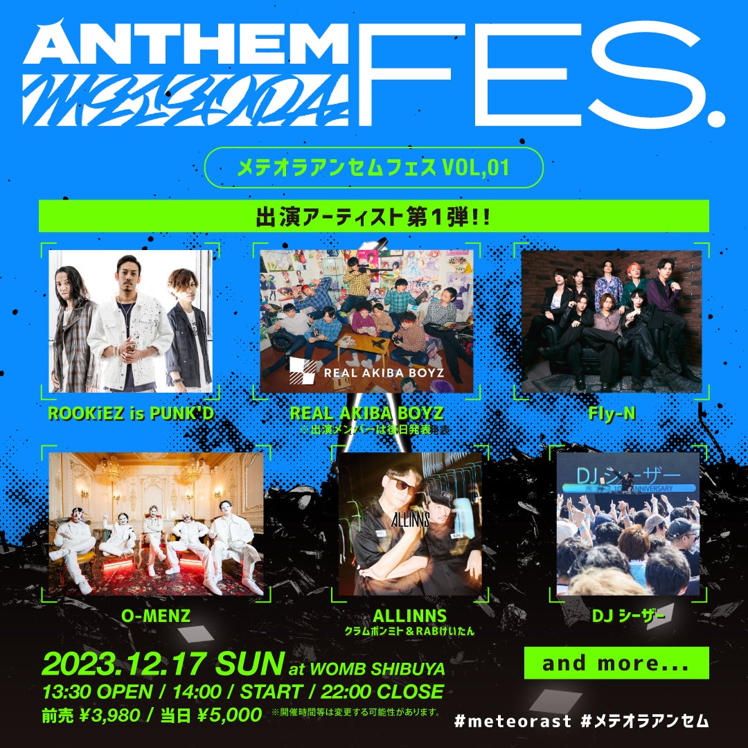 2周年を迎えた「METEORA st.」の音楽部門「METEORA ANTHEM」が立ち上げフェスを渋谷WOMBにて開催!出演アーティスト第一弾を公開