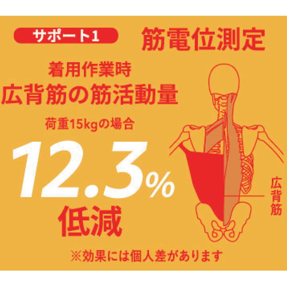 ①着用作業時、広背筋の筋活動量12.3%低減(荷重15kgの場合)