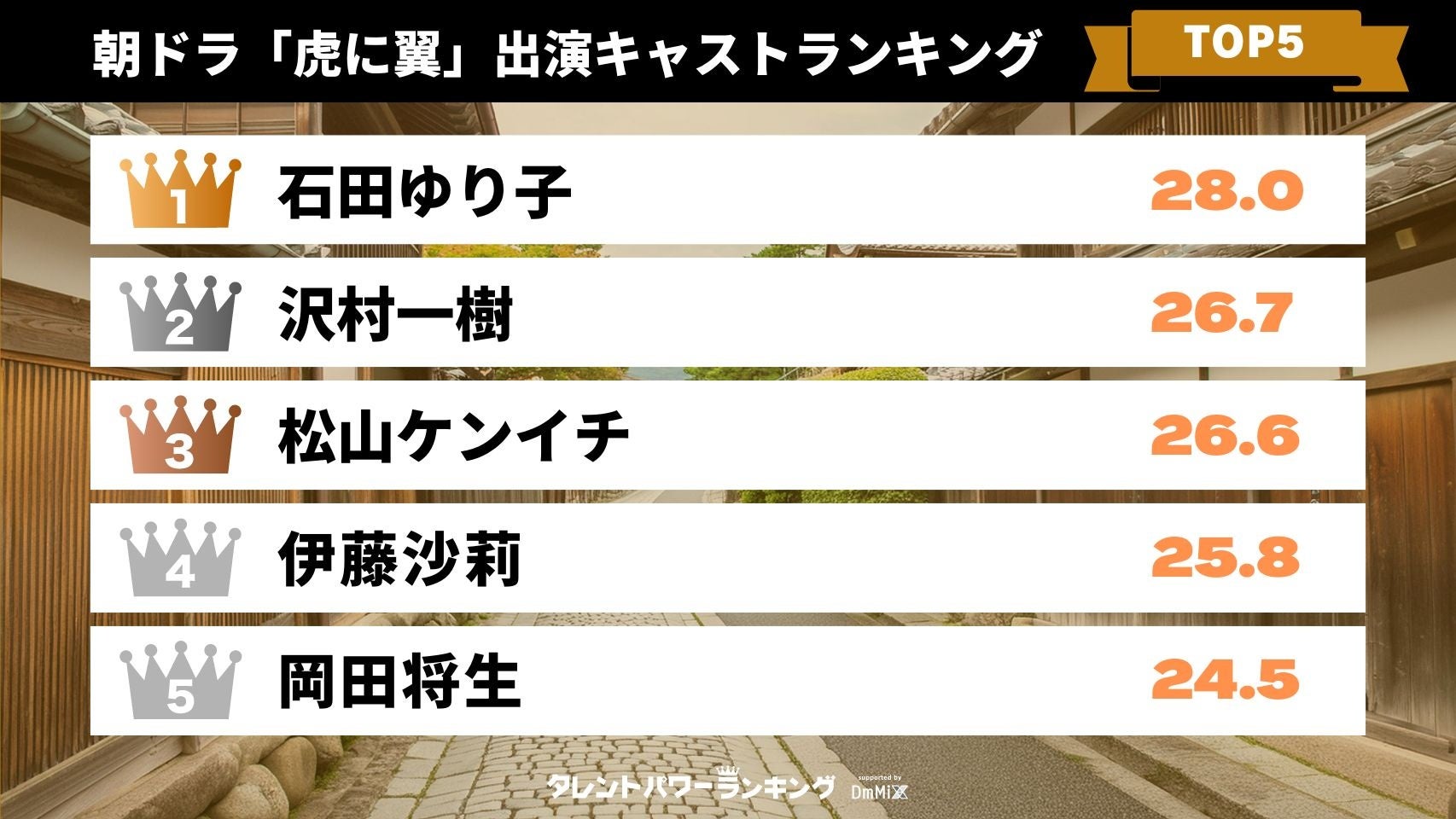 『タレントパワーランキング』では、タレントパワーランキングに登録されている、NHK朝ドラ「虎に翼」に出演しているタレントのパワースコアを調査。