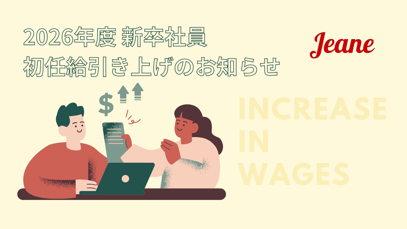株式会社ジーン(本社:東京・南青山、以下当社)は、2026年4月1日入社の新卒社員の初任給を5万円引き上げ、月額30万円にすることに決定いたしました。