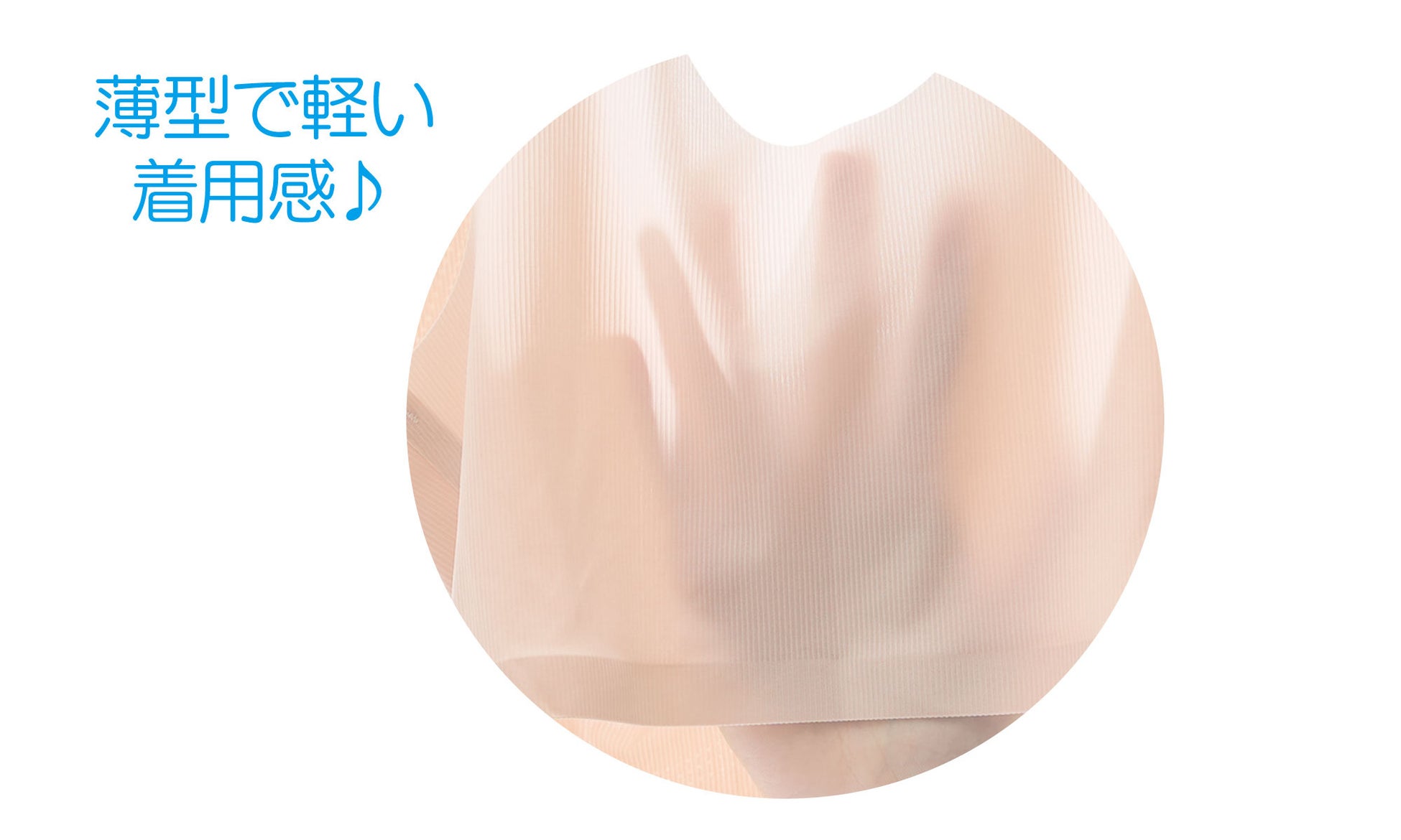 「ゆるふわおやすみブラ」と「ゆるふわおやすみショーツ」は伸縮性の良いストレッチ生地。薄さ約0.35㎝で圧迫感がなく素肌と一体化するような薄さで肌にピッタリフィットします。