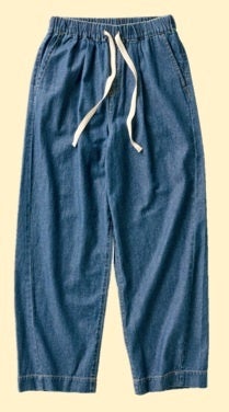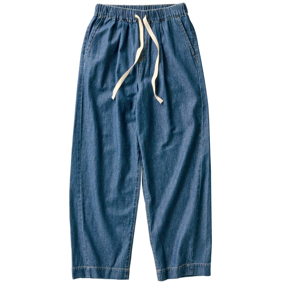 右:ゆったりらくちんデニムコクーンパンツ(カラー:フェードブルー)