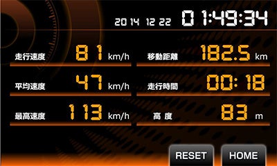内蔵GPSのデータをもとにした走行速度や移動距離などを表示するカスタム画面を搭載。