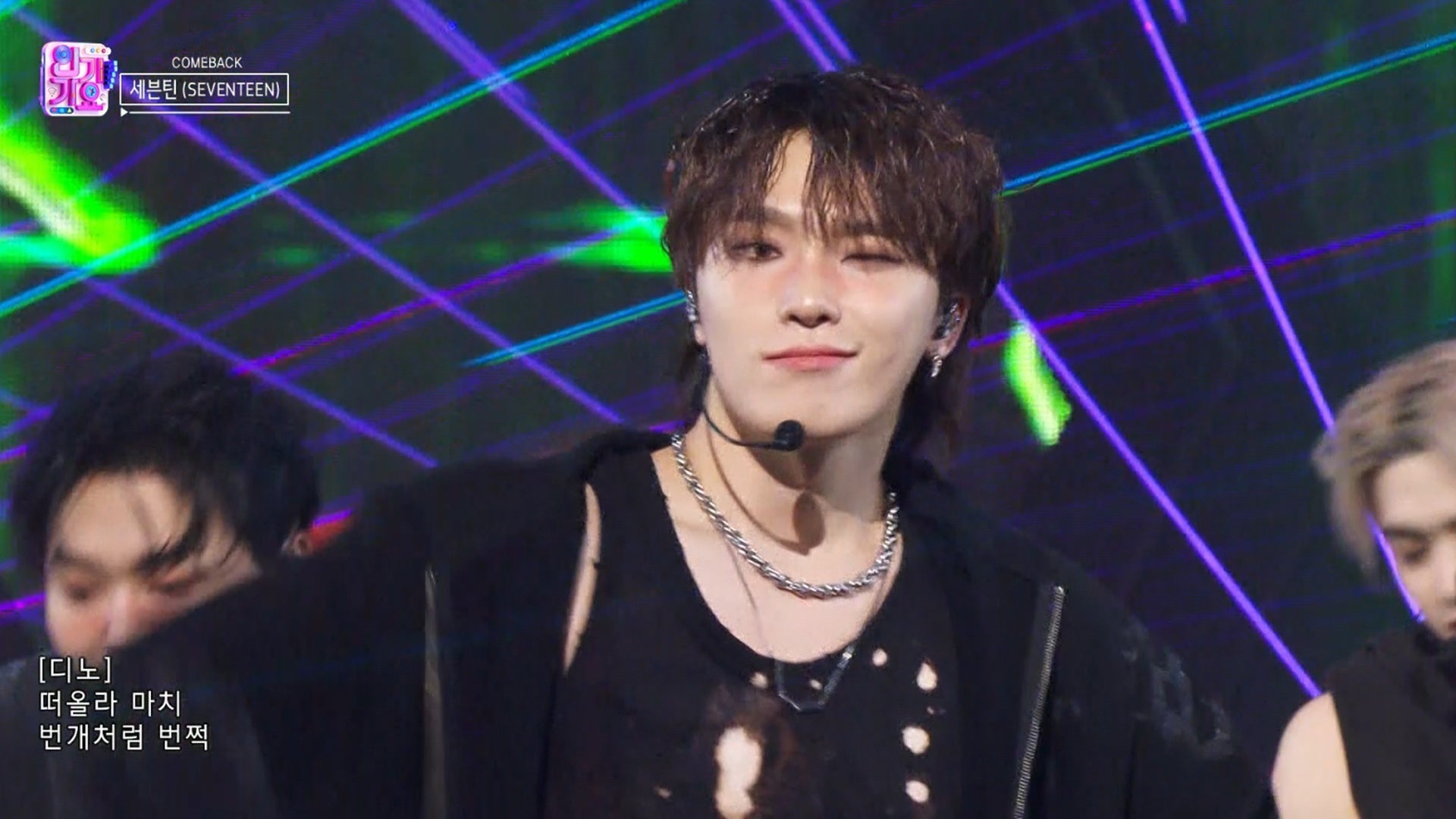 デビューから10周年を迎えたSEVENTEENが5th Album「HAPPY BURSTDAY」のタイトル曲<THUNDER>で『人気歌謡』初ステージを掌握、 また今年1月にJYPエンターテインメントからデビューを果たした韓国人と日本人メンバーで構成される7人組ボーイズグループKickFlipは、新曲<FREEZE>と<Skip It!>でフレッシュな魅力を披露しました。