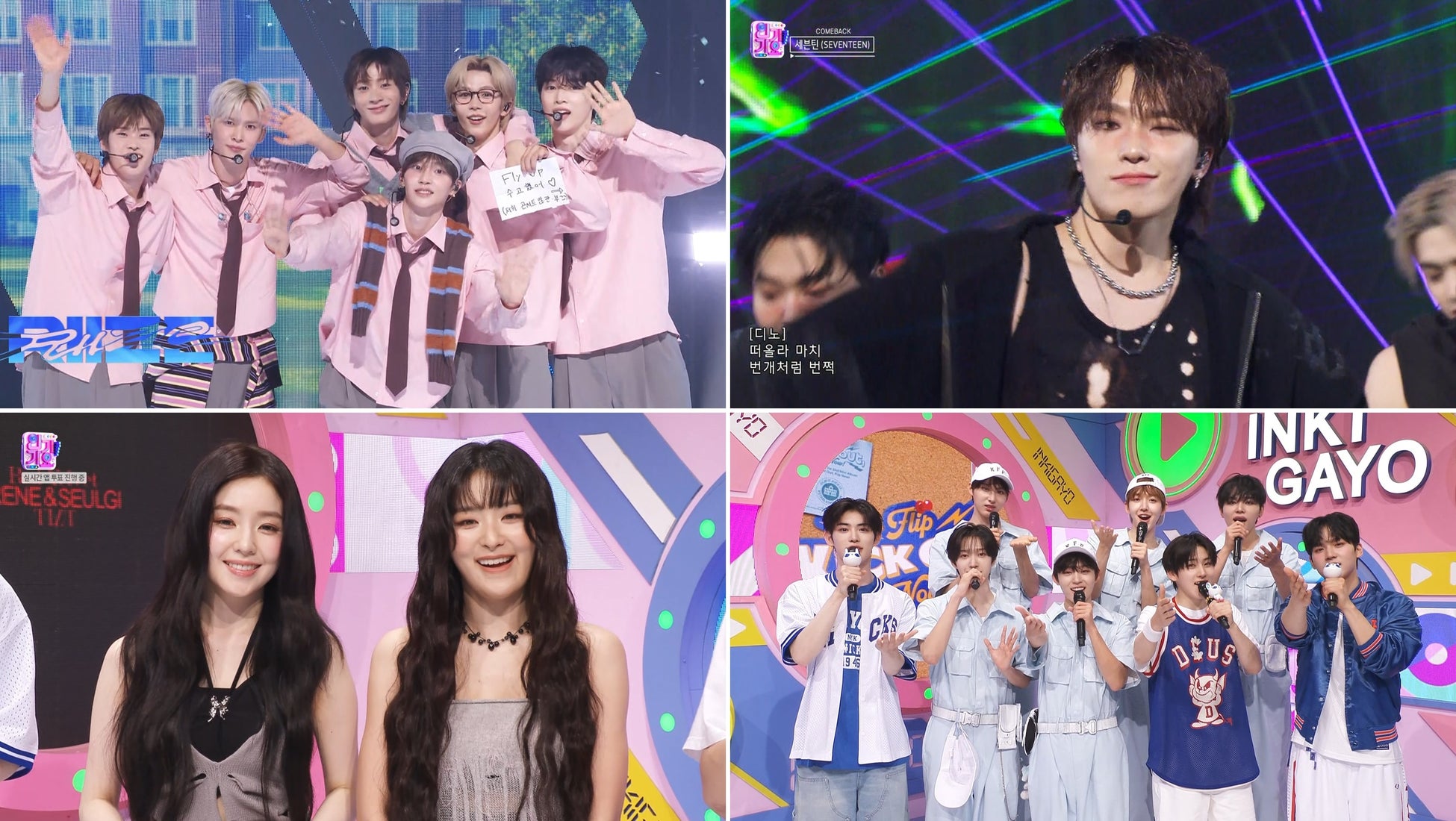 6月初週の『人気歌謡』にはSEVENTEEN、Red Velvet-IRENE&SEULGI、RIIZE、i-dle、MEOVV、KickFlip、スリン、SMORZ、X:IN、E'LAST、UAU、KIIRAS、tripleS、ファンウン(ONEUS)、キム・ウィヨン、キム・ジャンフンが出演。