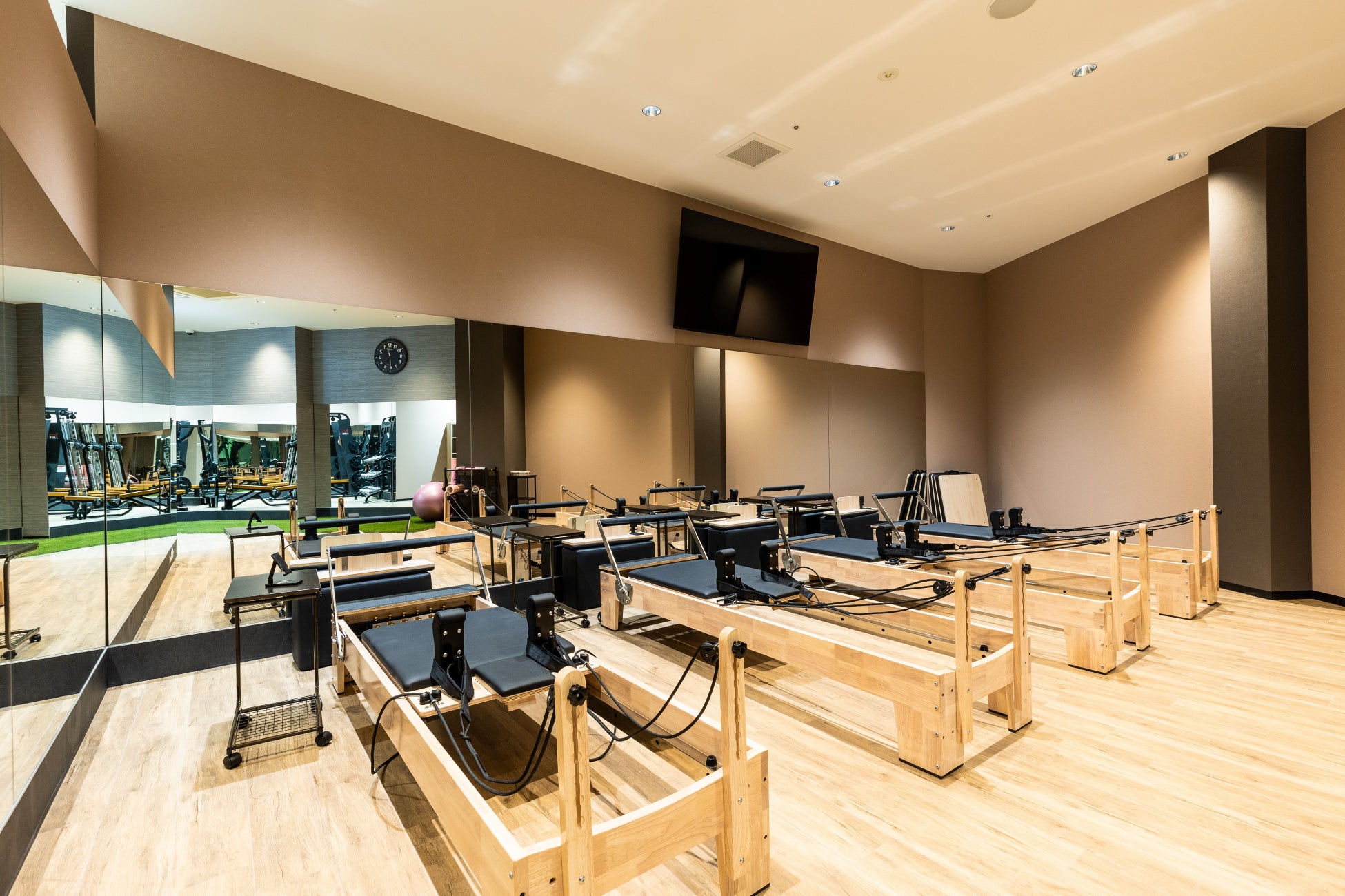 一般的なピラティスとは異なる、ピラティス専用のマシンを使用することにより、繊細に体をコントロールできるため、正しい姿勢で運動を行うことが可能です。これによりボディメイク効果や姿勢の改善が期待できます。