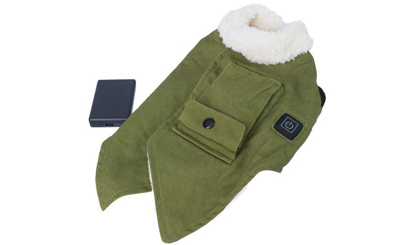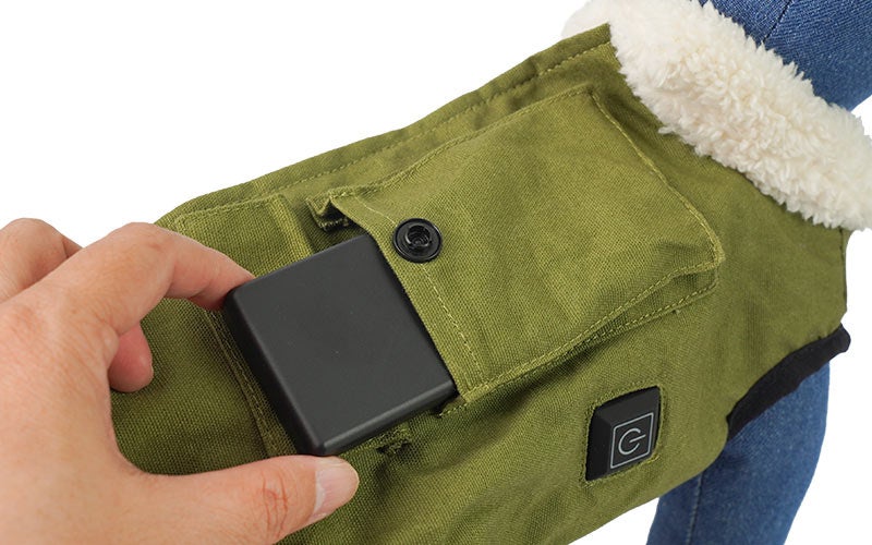 本製品は、お腹の部分にヒーターを内蔵した小型犬用の防寒ペット服です。