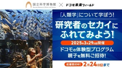 株式会社NTTドコモ(以下、ドコモ)は、「ドコモ未来フィールド×国立科学博物館企画」(以下、本企画)を2025年3月29日(土)に国立科学博物館筑波研究施設および上野本館で開催いたします。