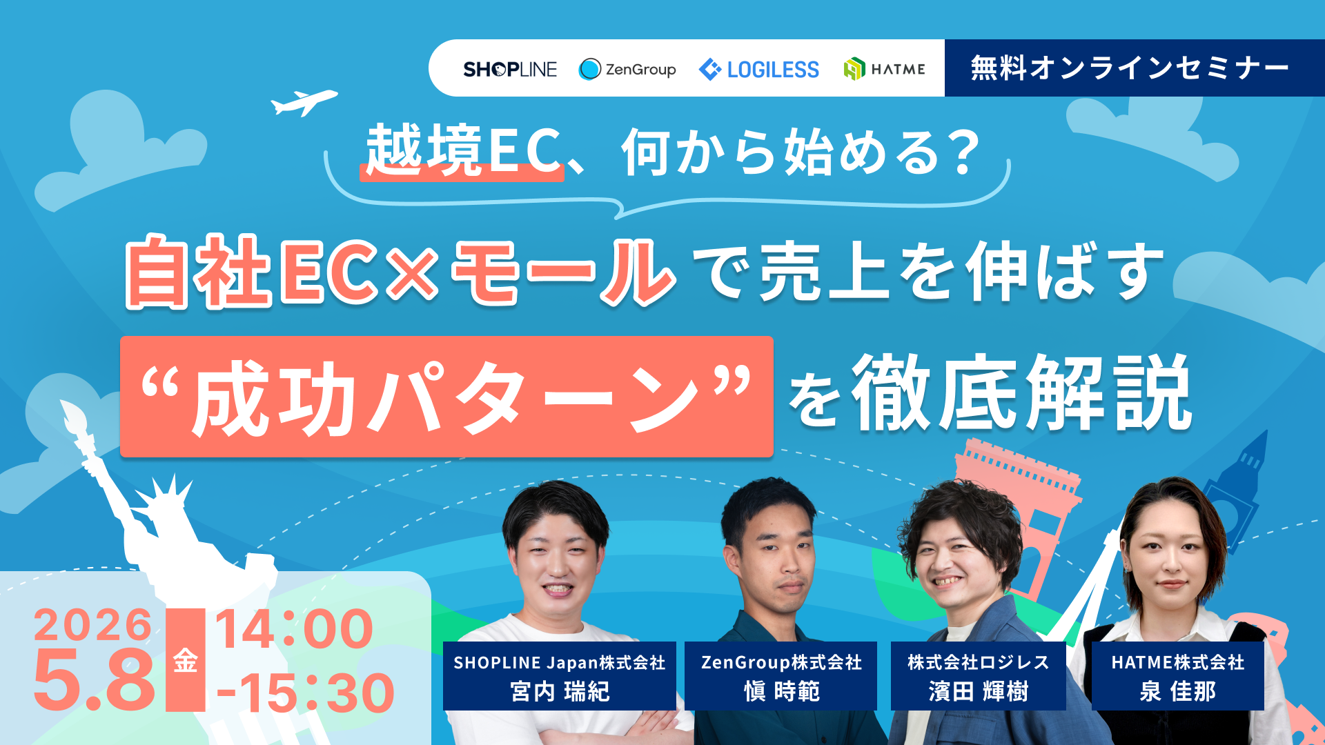 マーケティングアソシエーション株式会社の子会社であるHATME株式会社(本社:東京都台東区 代表取締役:中園広和、以下当社)は2026年5月8日(金)に、SHOPLINE Japan株式会社、ZenGroup株式会社、株式会社ロジレスと、4社共催ウェブセミナー「越境EC、何から始める? 自社EC×モールで売上を伸ばす“成功パターン”を徹底解説」を、開催いたします。