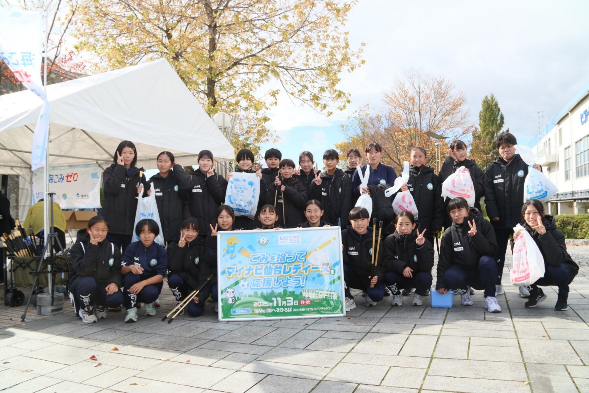 一般社団法人TOHOKU海にいいことプロジェクト(宮城海ごみなくし隊)は、2025年11月3日(月・祝)に生活の中での街のごみ拾い活動の習慣化を目的として、株式会社楽天野球団と連携した「ごみを拾ってマイナビ仙台レディースを応援しよう!」を開催いたしました。