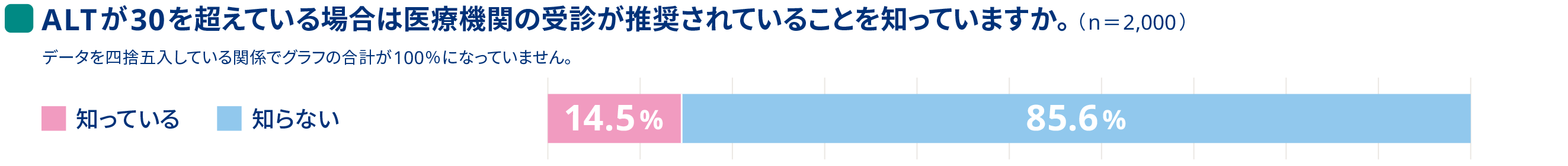 受診を検討するきっかけについて、約46.3%の人が「健康診断で肝機能の値が基準を超えたとき」と回答した一方で、肝機能検査値の認知度に課題があることから、肝機能検査値の正しい理解と認知拡大が受診行動につながることが示唆されました。