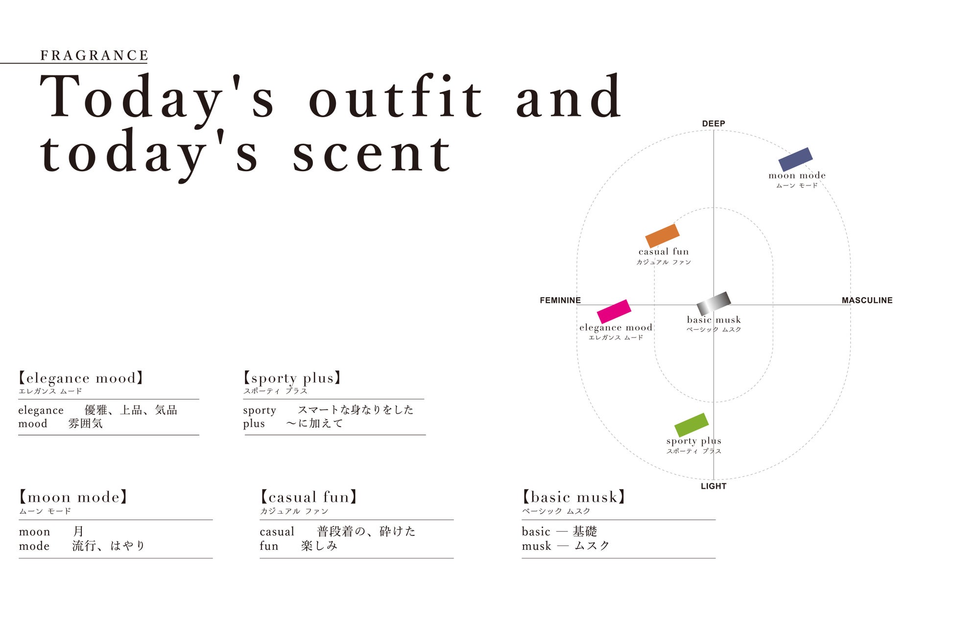 ファッションや髪型を考えるように、今日の香りを考える。香りをプラスすることで毎日がもっと楽しくなりますように。
