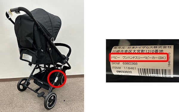 シール中央に商品名「i ベビー ワンハンドスリー ベビーカー(BK)」と記載されている商品が対象となります。