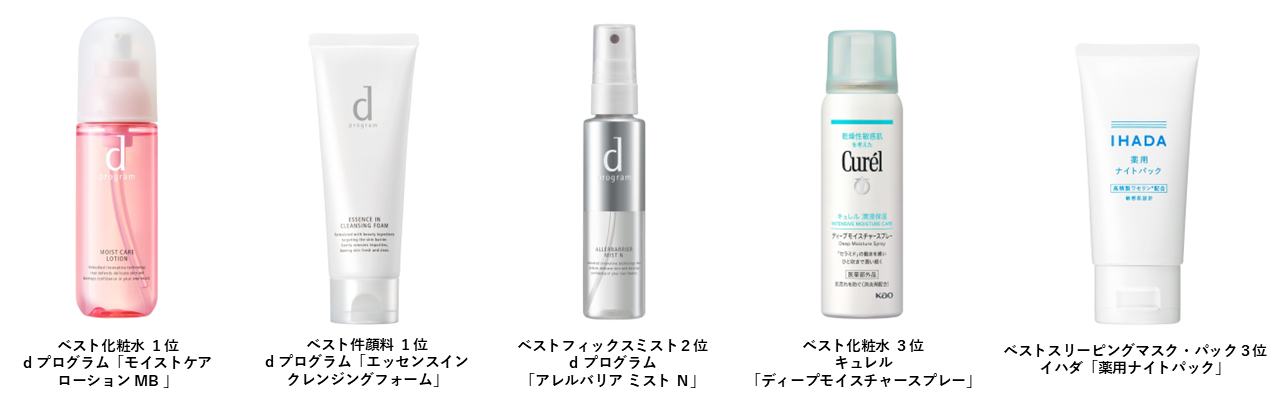 今回のベストコスメのスキンケアカテゴリでもう一つ注目なのが、「国産敏感肌ブランド」です。スキンケアカテゴリ全体で3ブランド(dプログラム、キュレル、イハダ)5商品がランクイン。特にdプログラムは3商品が受賞しました。