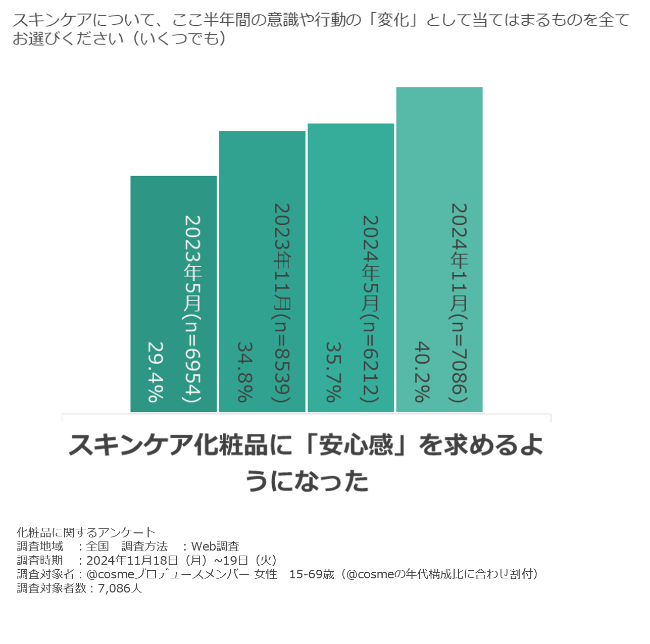 前述のとおり、「スキンケアに安心感を求めるようになった」生活者が引き続き増加傾向であることが、敏感肌ブランドが支持された要因の一つといえるでしょう。