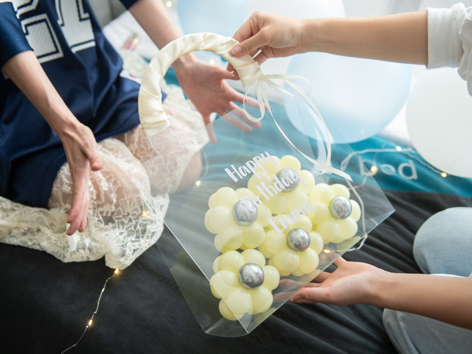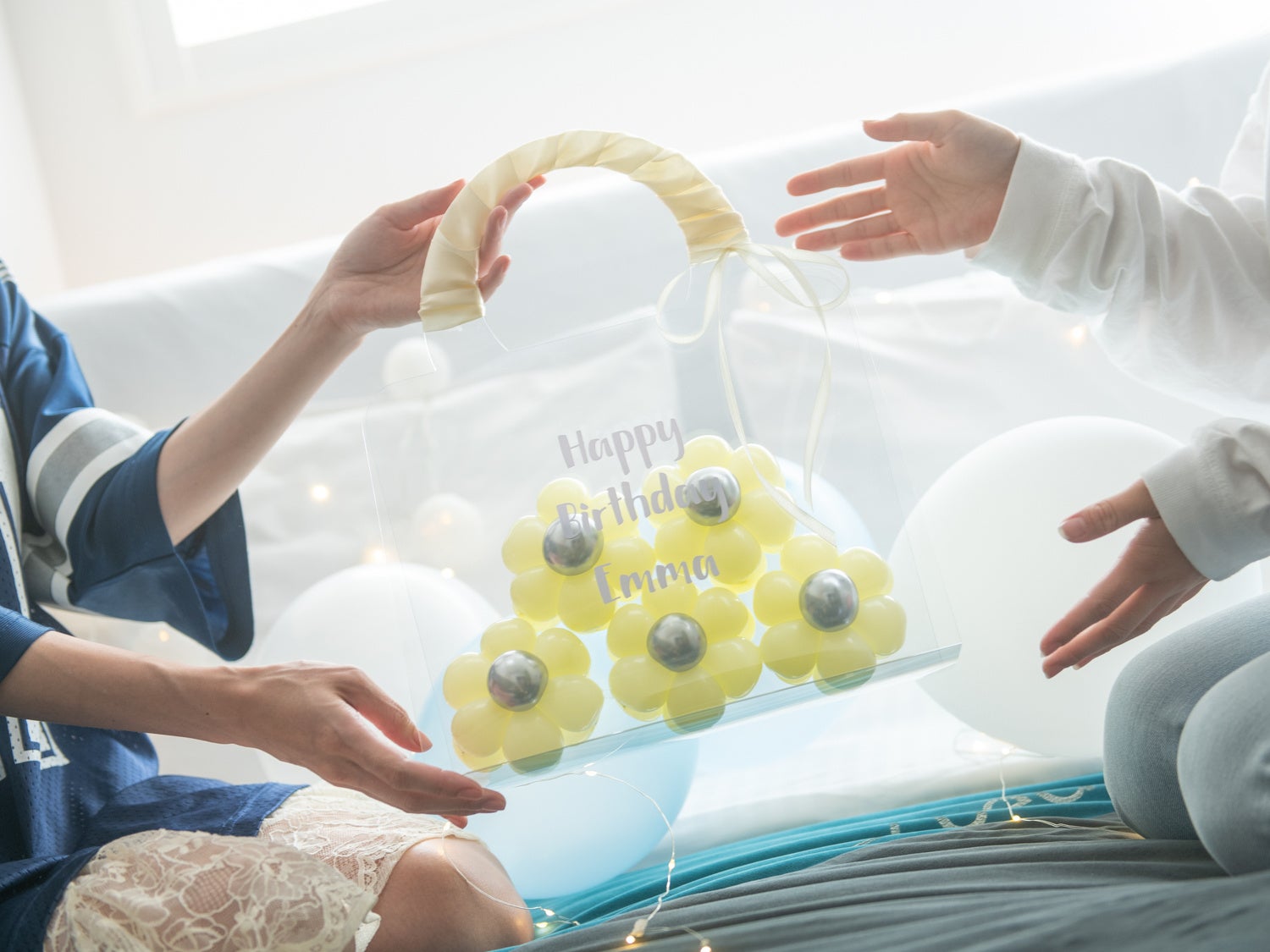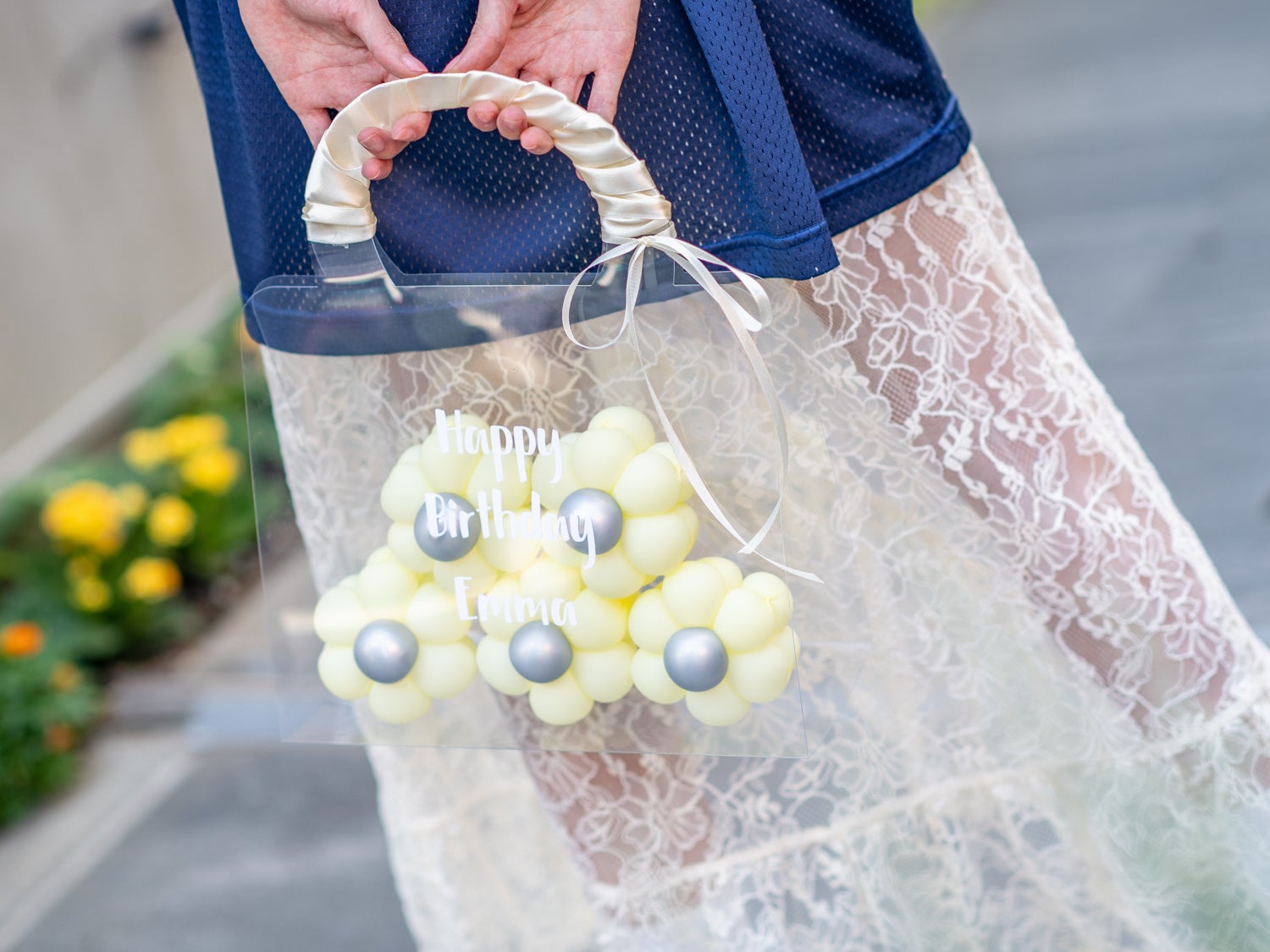 また、手ごろなサイズのバルーンフラワーが手持ち付きのクリアバッグに入っているため、見た目もおしゃれで持ち運びも簡単。可愛らしいプレゼントとして、贈る相手に喜んでいただけます。