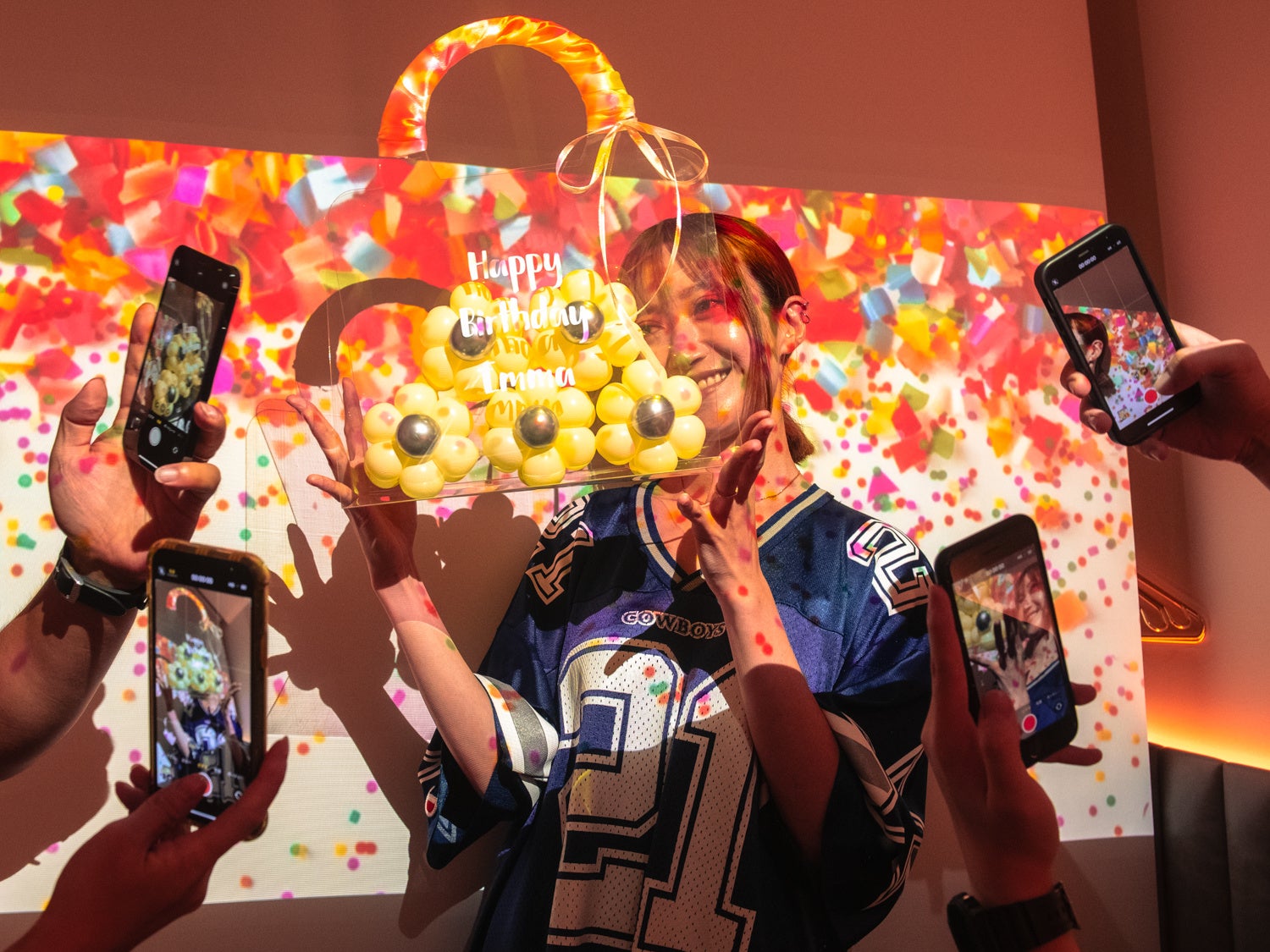 本プランには通常有料で貸出しているフィルム10枚付きチェキも無料でレンタルできるため、バルーンフラワーバッグを片手に華やかな写真を撮ってみたり、プロジェクターに一緒に過ごした思い出の写真や好きな動画を投影し、その前で写真を撮影するといった全室プロジェクター付きの「slash 川崎」ならではの過ごし方で、大切な人や友人の誕生日や記念日をお過ごしください。