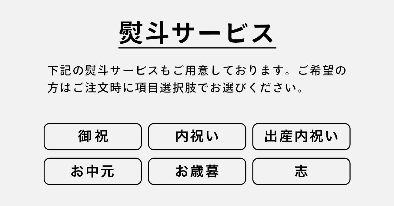 また、贈る相手やギフトシーンに合わせてラッピングや熨斗もお選びいただくことができます。