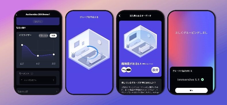 使い慣れたスマートフォン上でカラフルなイラストとともに操作をガイド。面倒な初期設定もアプリを使った対話形式の手順に従えば迷うことなく確実に完了します。また、EQやルーム・キャリブレーションなどの細かい調整も、いつでも直感的に行うことが可能です。