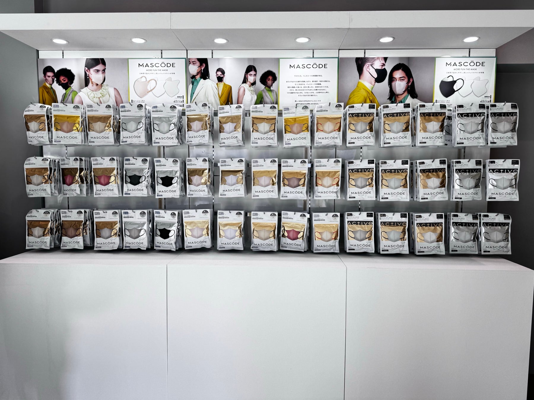 ポップアップストアでは、通常あまり目にすることができないラインナップを含めた19種類のMASCODEを展示、販売。来店していただいた皆様には自分に合ったカラーのマスクを選んでいただき、マスクもファッションの一部として、楽しんでいただきました。