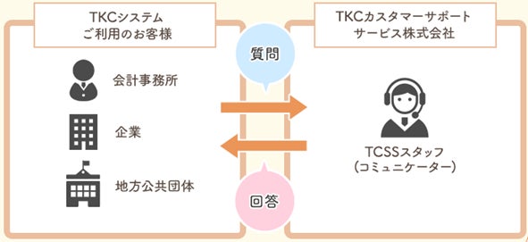 TKCカスタマーサポートサービス株式会社(TCSS)は、株式会社TKCの100%出資の子会社で、コールセンターサービスを専門にしています。TKCのシステムやサービスをご利用のユーザーからの問い合わせに電話やメールで回答することを業務としています。