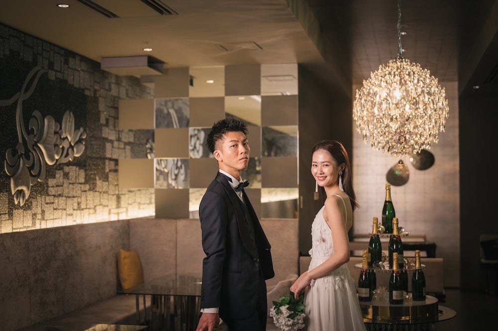 新郎新婦の写真撮影では、ガラス張りの前で夜景をバックにした写真やキャンドルを前にした写真などさまざまなシチュエーションで撮影いただけます。キャンドルを置くとガラスに明かりが反射され、幻想的な空間に包まれます。