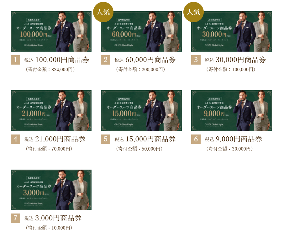 オーダースーツ専門店「グローバルスタイル」を運営するグローバルスタイル株式会社(東京証券取引所 スタンダード市場:7126、本社:大阪市中央区、代表取締役社長 田城弘志)が、鳥取市のふるさと納税返礼品として取り扱う「オーダースーツ商品券」の有効期限を変更しました。