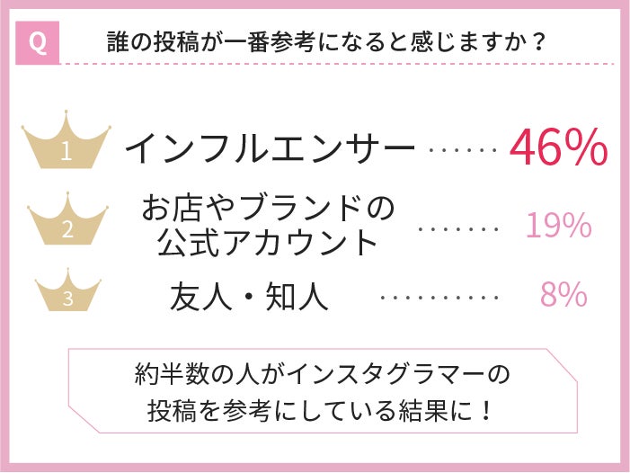 情報収集する際に参考にするのは「インフルエンサーの投稿」と回答した人が、46%に上りました。