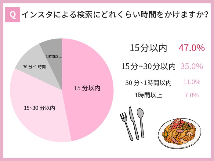 47%がInstagramでグルメ情報を検索する際に費やす時間は「15分以内」と回答