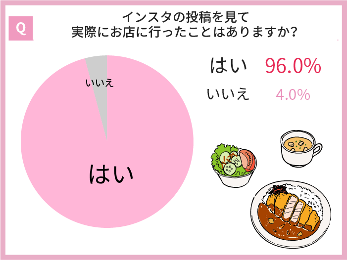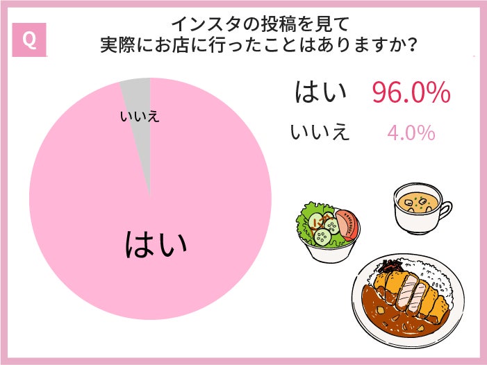 96%がInstagramの投稿を見て実際にお店に行ったことが「ある」と回答