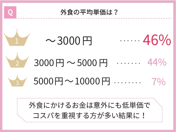外食の平均単価は「〜3,000円」が最多であることがわかりました。