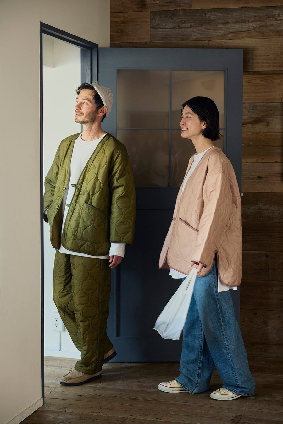 アウター感覚で着られるカラートーンも特徴の一つ。部屋着としてだけでなく、ちょっとそこまでさっと羽織って外にも出られるスタイルを提案しています。