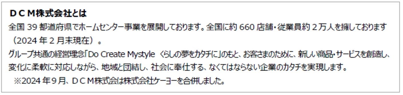 全国でホームセンター事業を展開するDCM株式会社(本社:東京都品川区、代表取締役社長:石黒靖規は、DCM千歳北店(北海道千歳市)を11月21日(木)にオープンいたしますので、ここにご案内いたします。