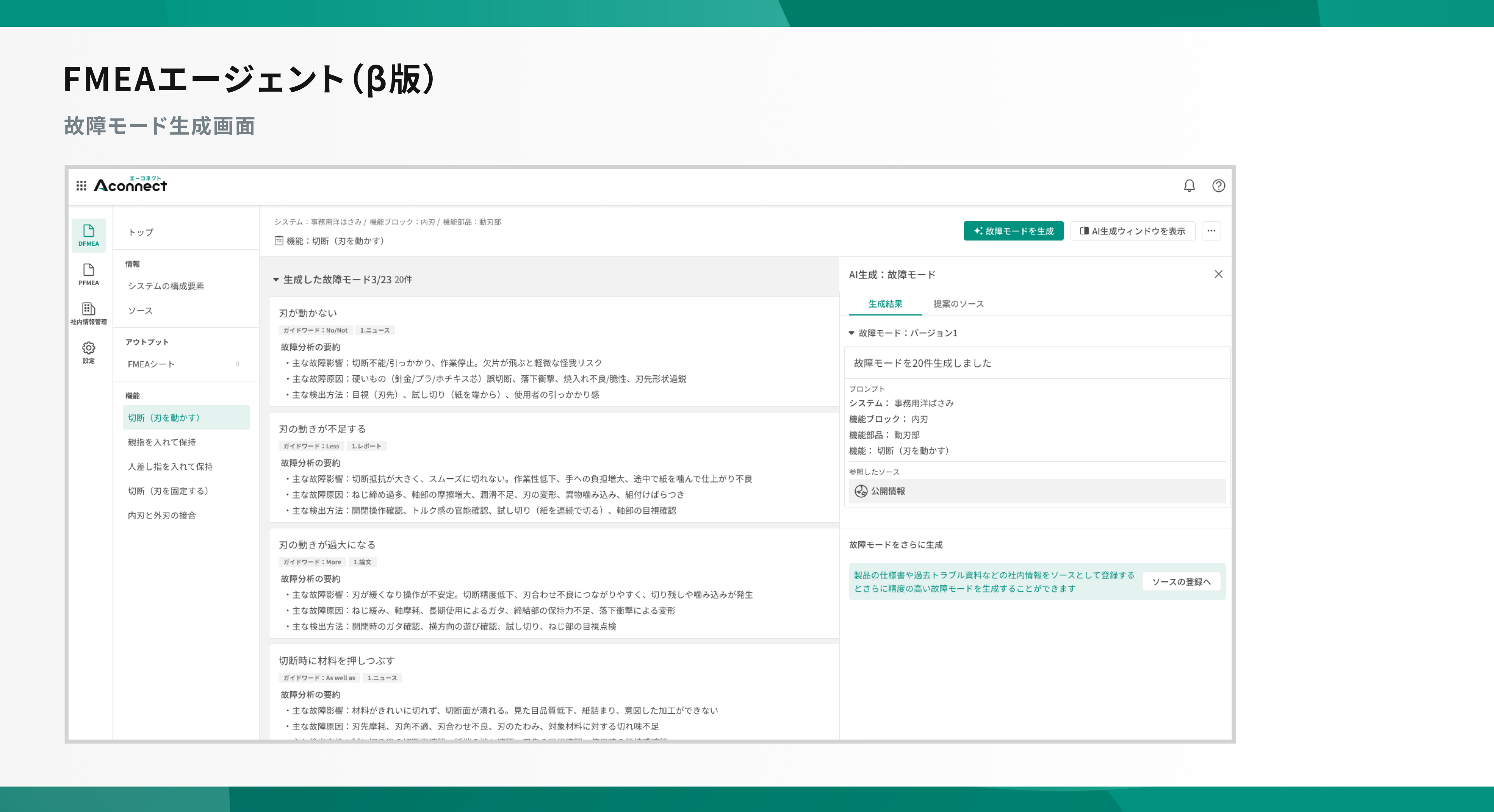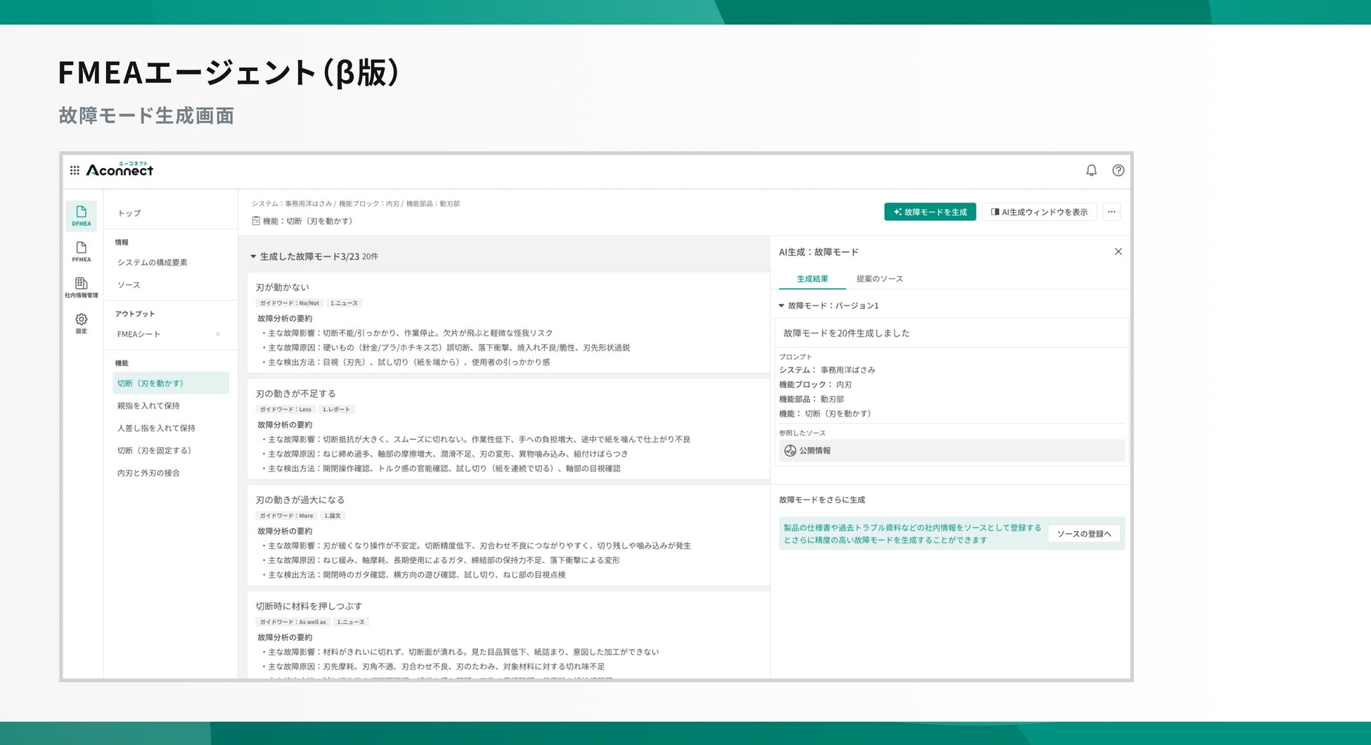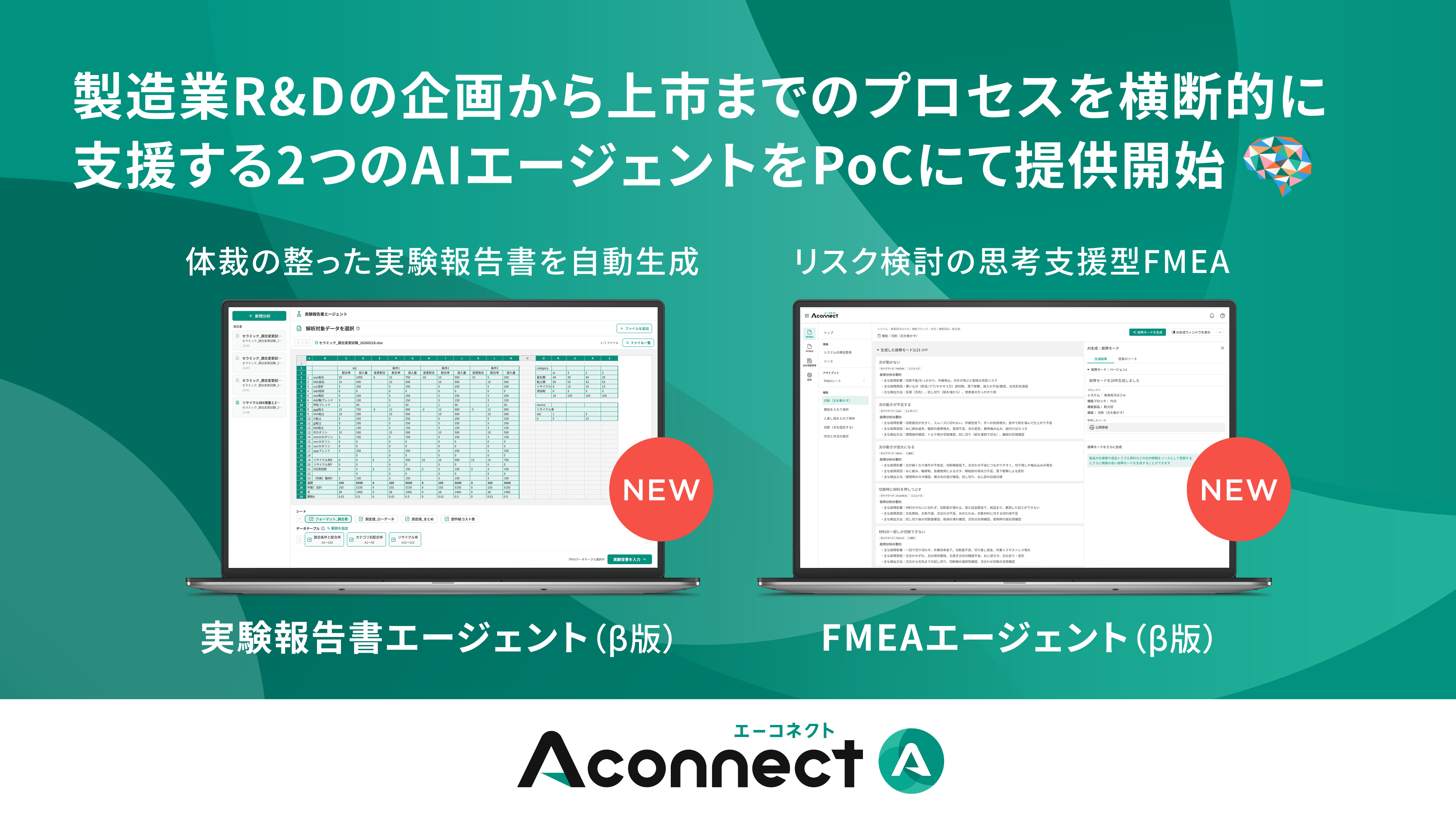 「Aconnect」に新たに2つのエージェント(β版)をPoC形式で提供開始 実験報告書/FMEAエージェントの搭載で「企画~上市まで」を一気通貫支援