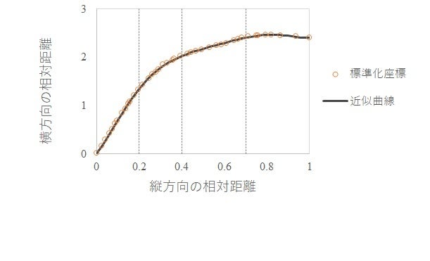 そこでフェイスラインの座標を抽出し、顔の大きさで標準化した顔の面積を求め、凸部のある顔の下側の面積で凹部のある顔の中間部で割ったものを「たるみ指数」として算出しました。目視によるたるみレベルが異なる複数の女性の顔画像にて「たるみ指数」とたるみレベルの相関関係を調査したところ、たるみの程度が進行しているほど、「たるみ指数」は大きい値を示し、たるみがフェイスラインの凸凹と連動することが確認できました。