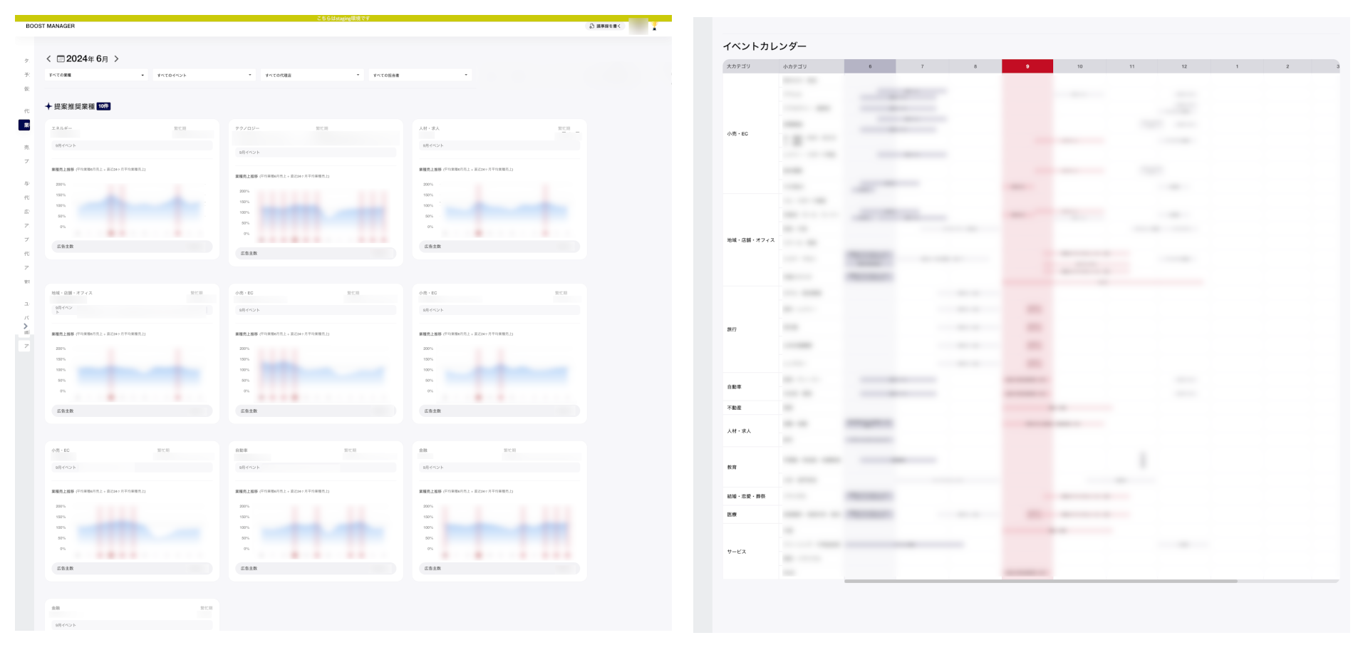 過去の広告運用データと、当社の保有する業種トレンドデータなどを蓄積し、今月どの業種に提案すべきかを一目で把握できます。顧客への提案の遅れを防止することができます。