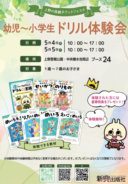 株式会社新興出版社啓林館・文研出版(本社:大阪市、代表取締役社長:佐藤諭史)は、学習参考書ブランドの「新興出版社」と絵本・児童書ブランドの「文研出版」で、5月4日(月・祝)、5月5日(火・祝)開催の「上野の森 親子ブックフェスタ2026」に出展します。