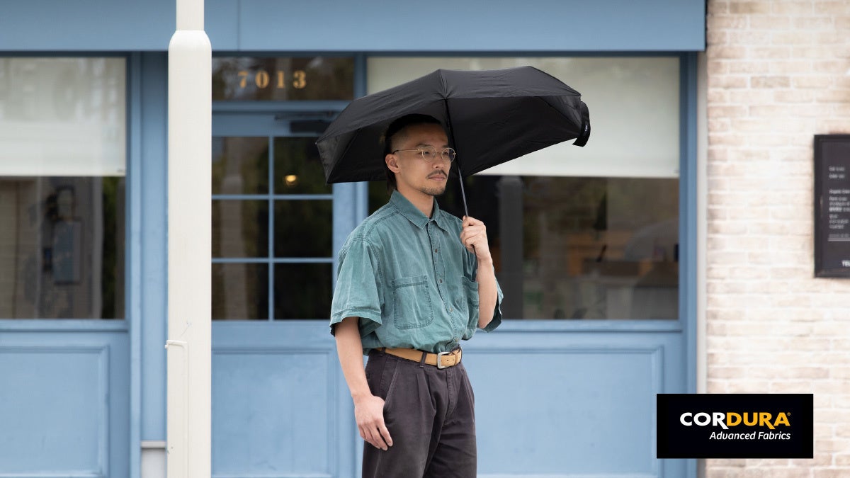 いろいろなスタイルで折りたたみ傘を持ち運べる、取り回しやすさを追求した傘袋。