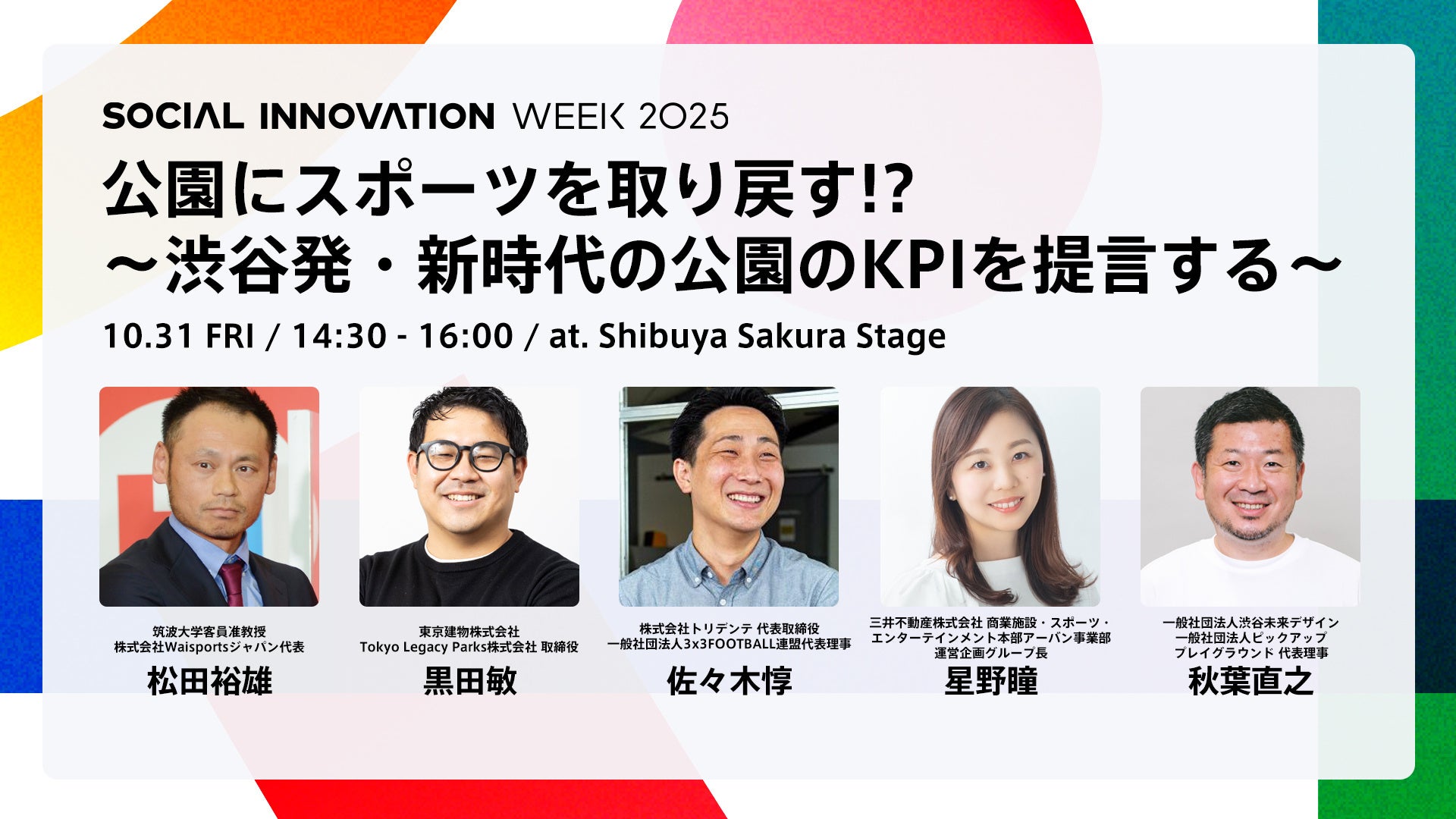 それらを渋谷から実証・実装することにより、公園が拡張するスポーツの未来を探るセッションです。