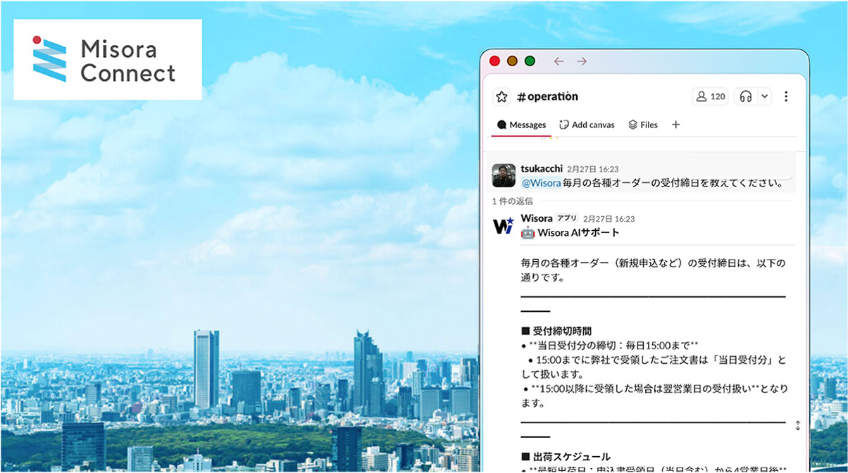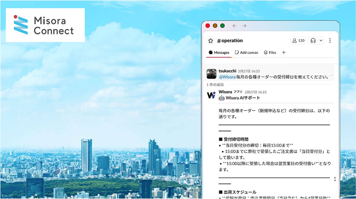 ミソラコネクトが、社内問い合わせ対応に生成AIボット「Wisora」を導入
