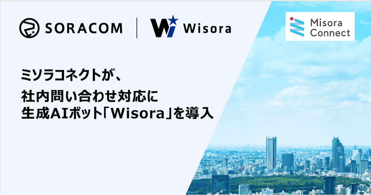 株式会社ソラコム(本社:東京都港区、代表取締役社長 CEO 玉川 憲)は、ソラコムグループの株式会社ミソラコネクト(本社:東京都文京区、代表取締役社長 森田 暢達)が、社内の問い合わせ対応を効率化するため、生成AIボットサービス「Wisora(ウィソラ)」を導入したことをお知らせいたします。