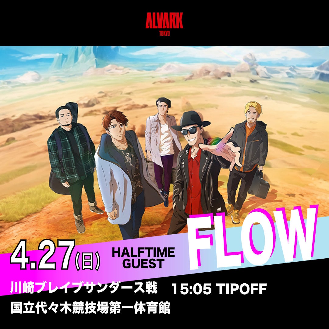 2025年4月27日(日)に国立代々木競技場第一体育館で行うアルバルク東京ホームゲームに、5人組ミクスチャーロックバンド「FLOW」さんの来場が決定しましたのでお知らせします。