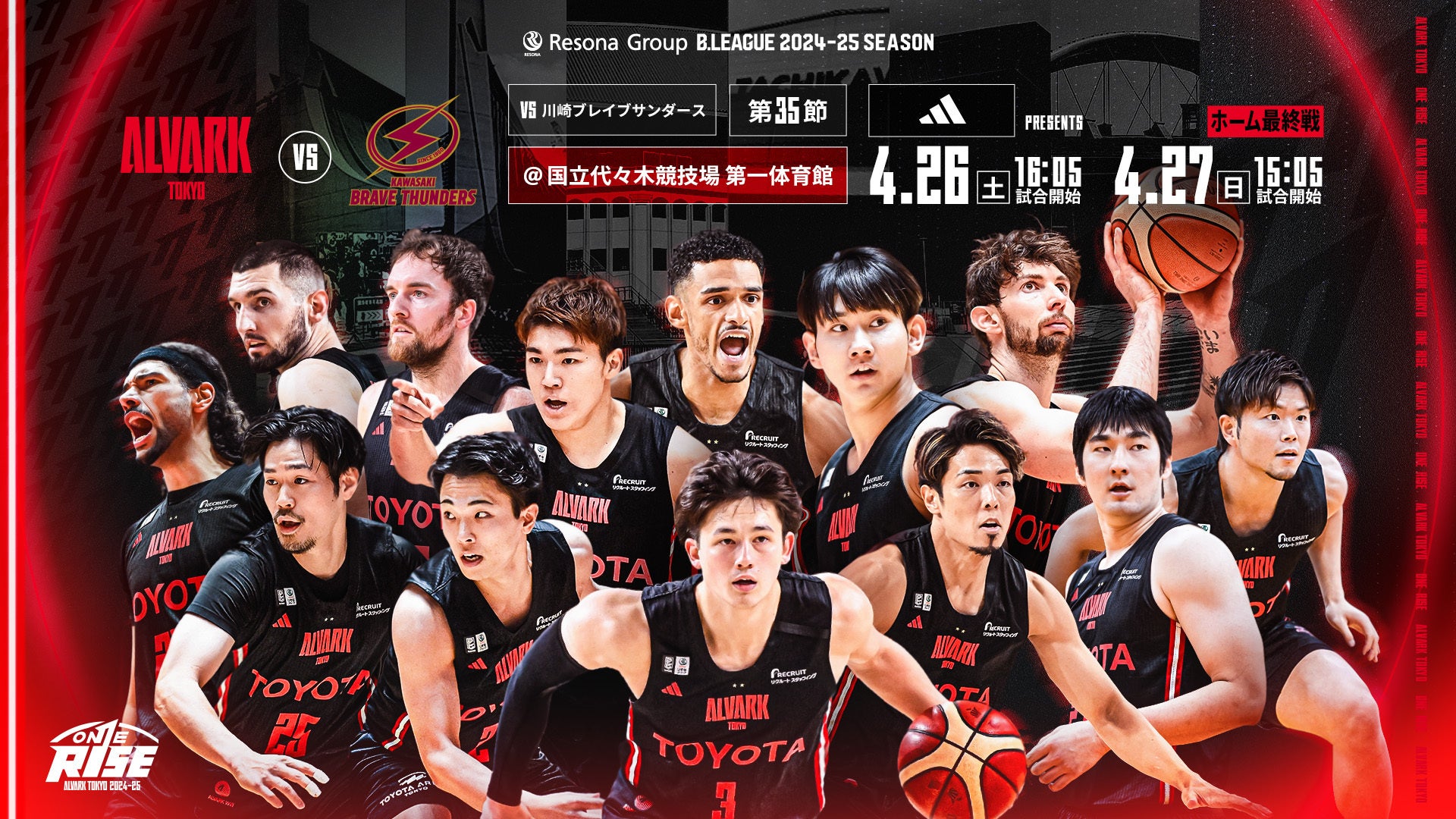 日程:2025年4月27日(日) 15:05 TIPOFF 川崎ブレイブサンダース戦