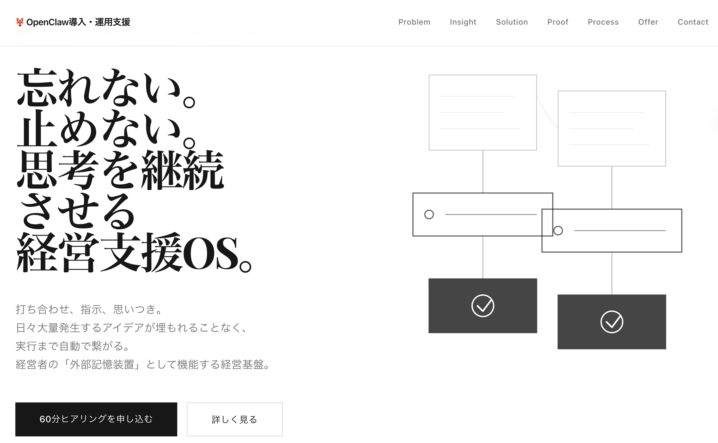 ライトアップはAIエージェント「OpenClaw」を活用し、経営者の思考を止めない経営支援OSを提供します。