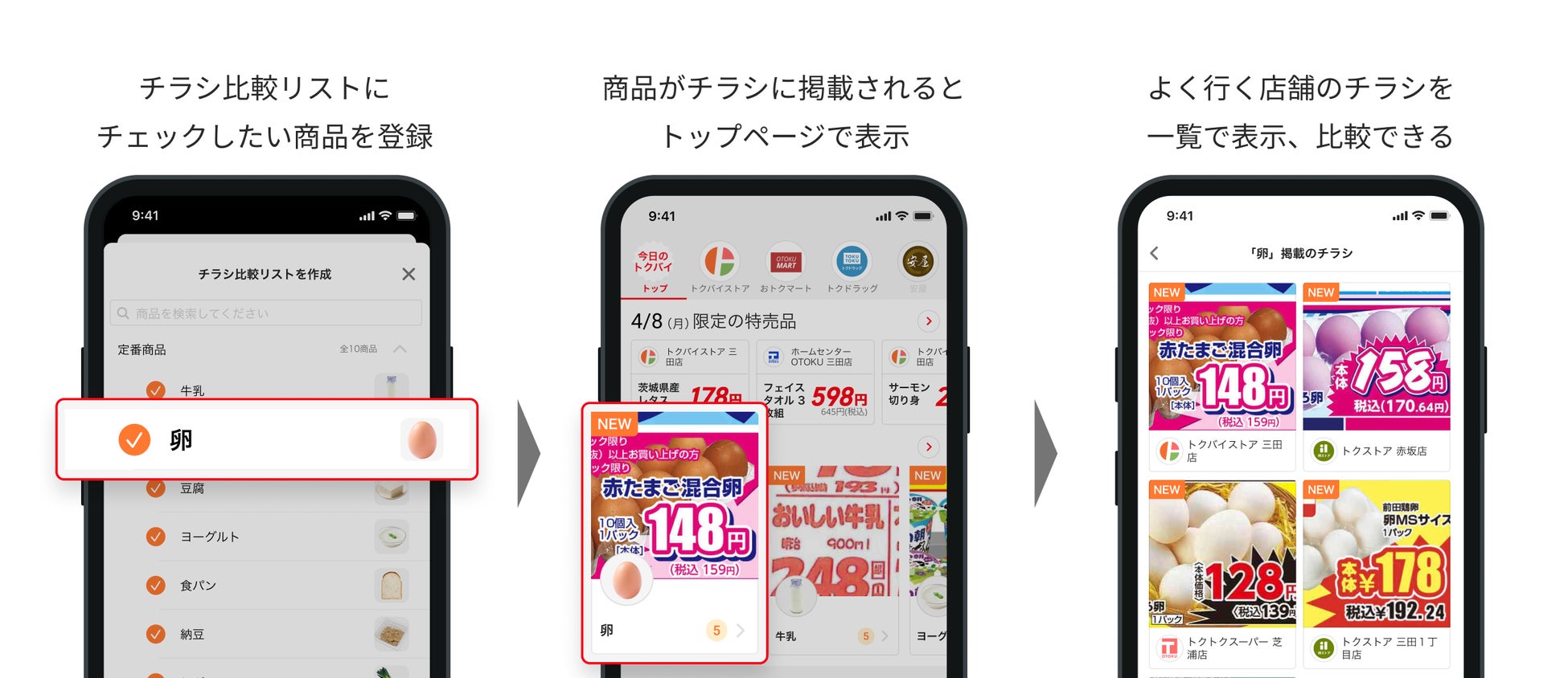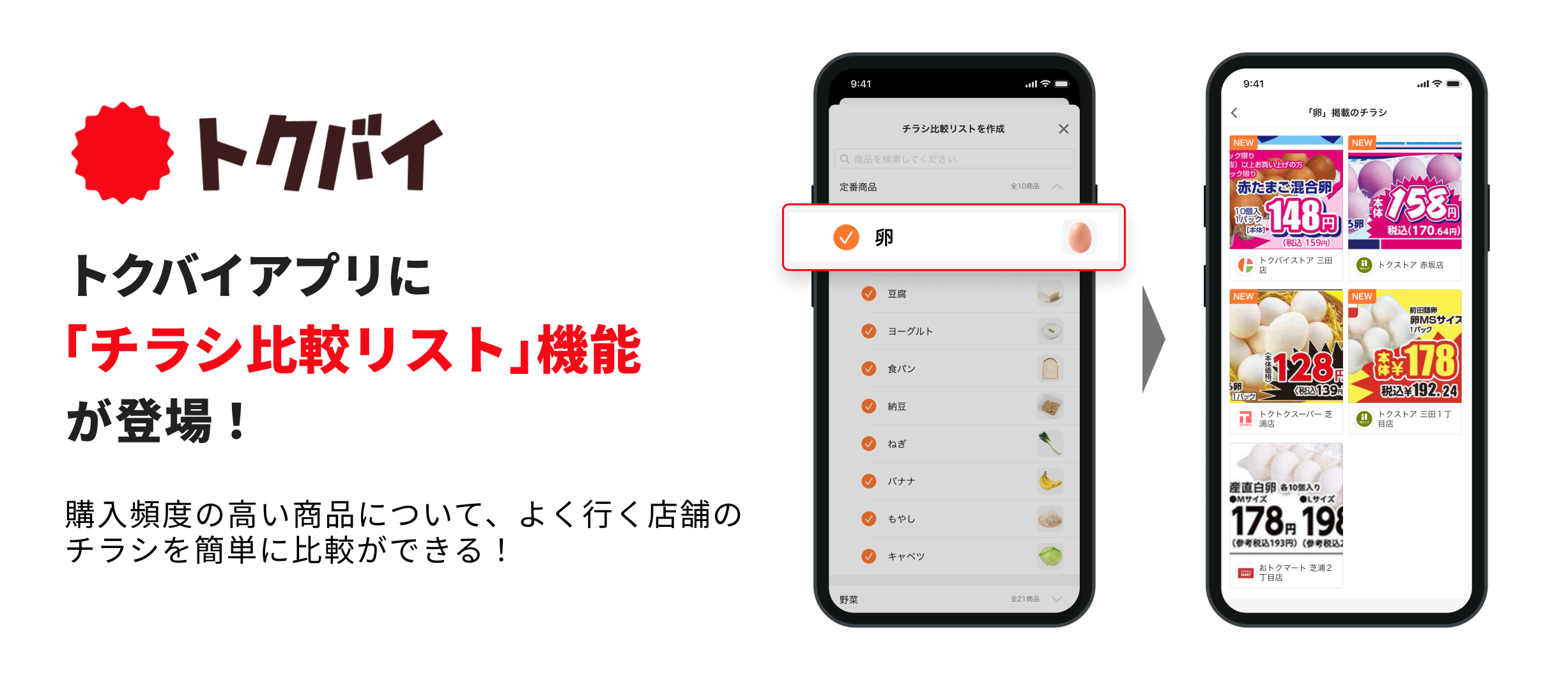 ~トクバイアプリにAI画像解析を活用した新機能「チラシ比較リスト」が登場!おトクな情報を見逃さず、購入頻度の高い商品のチラシを一目で比較可能に!~