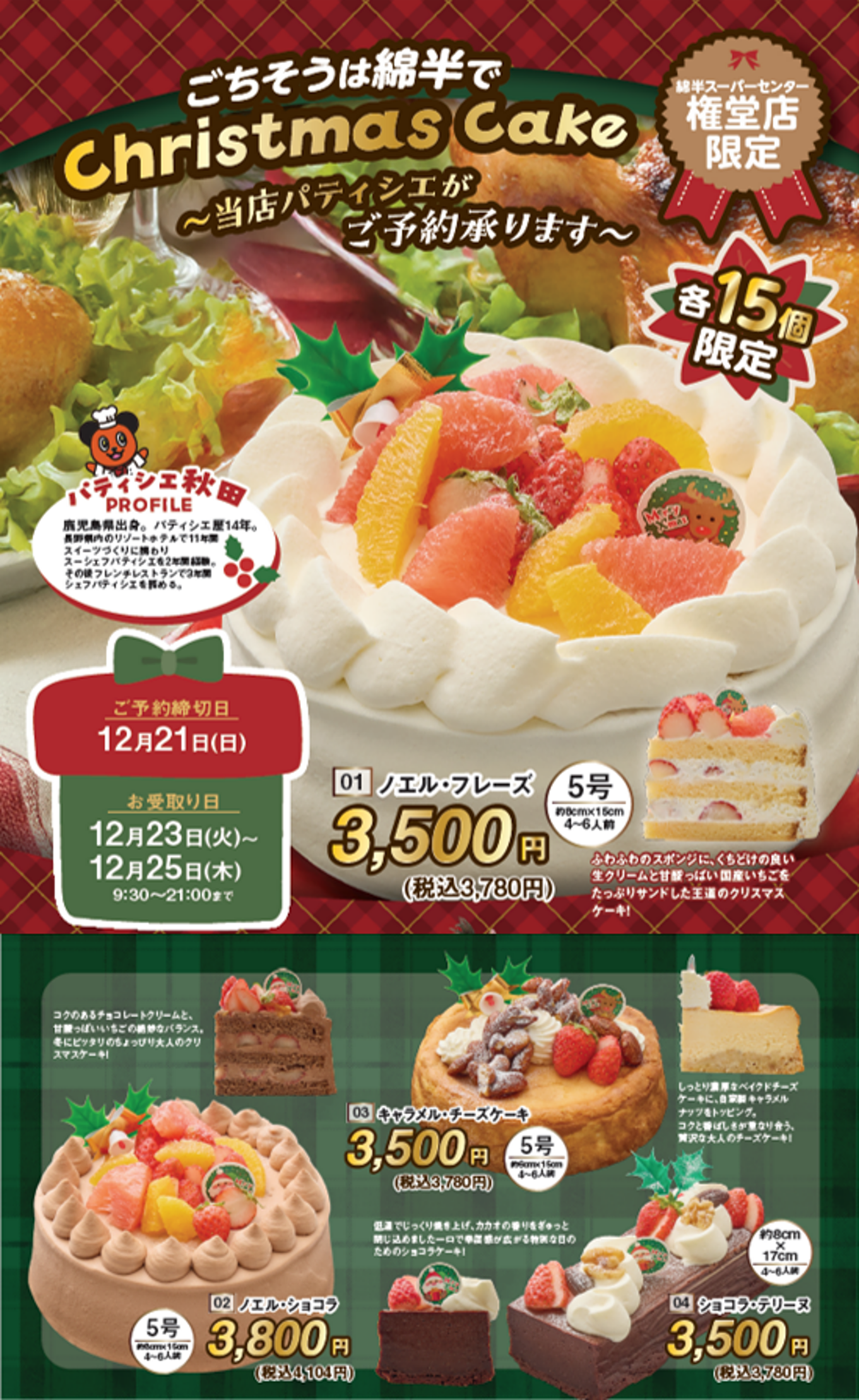 綿半スーパーセンター権堂店にパティシエ誕生!特製スイーツ販売&クリスマスケーキ予約スタート