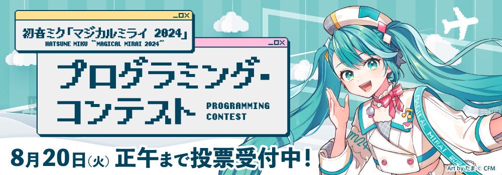 クリプトン・フューチャー・メディア株式会社(本社:北海道札幌市、代表取締役:伊藤博之、以下クリプトン)は、2024年8月8日(木)正午に、現在開催中の『初音ミク「マジカルミライ 2024」プログラミング・コンテスト』における入選作品を発表いたしました。本コンテストの受賞作品は、入選作品の発表と同時にスタートした一般投票を経て最終決定となります。投票の受付期限は2024年8月20日(火)正午です。