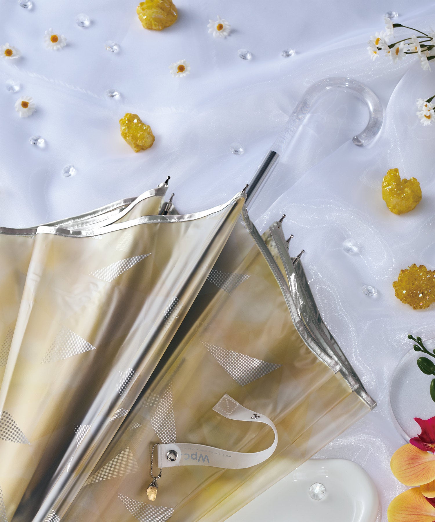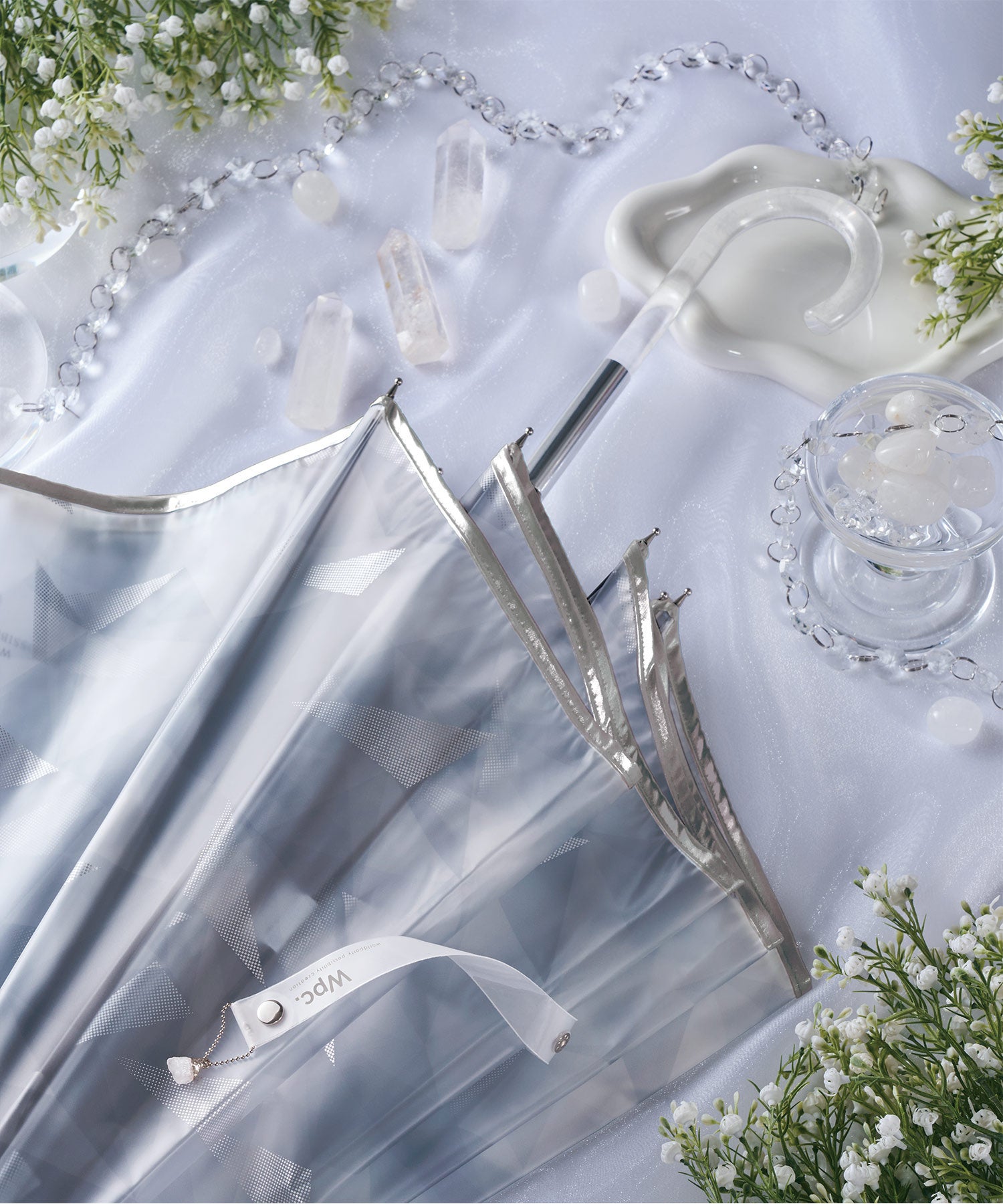今年の新作ビニール傘は、宝石から着想を得た『ジェムストーンアンブレラ』、ボリュームのあるフリルに上品さが宿る『シアーフリルアンブレラ』、モードな雰囲気を纏う都会的な『シルバーグラデーションアンブレラ/シルバーグラデーションアンブレラミニ』の3種がラインナップ。どれも使う人の個性を引き立てる、ファッショナブルなデザインとなっております。