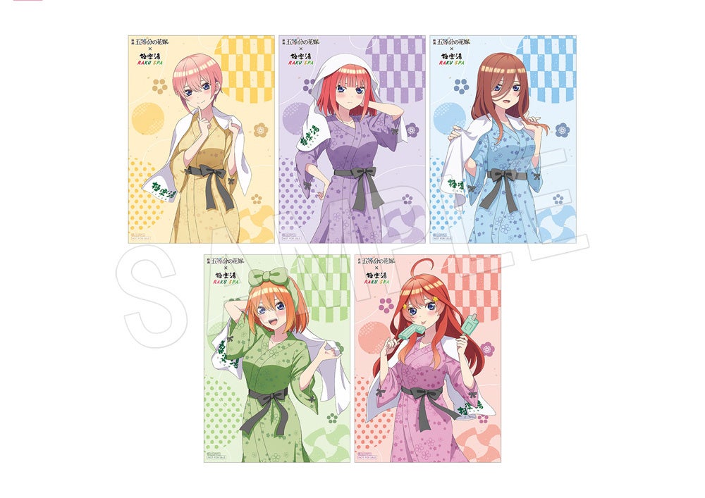 映画「五等分の花嫁」×極楽湯・RAKU SPAコラボ「癒し500%~五人五色のごくらく~」が開催!館内着姿の描き下ろしイラストを使用した新作グッズや「ぺたん娘」シリーズの新作も登場!