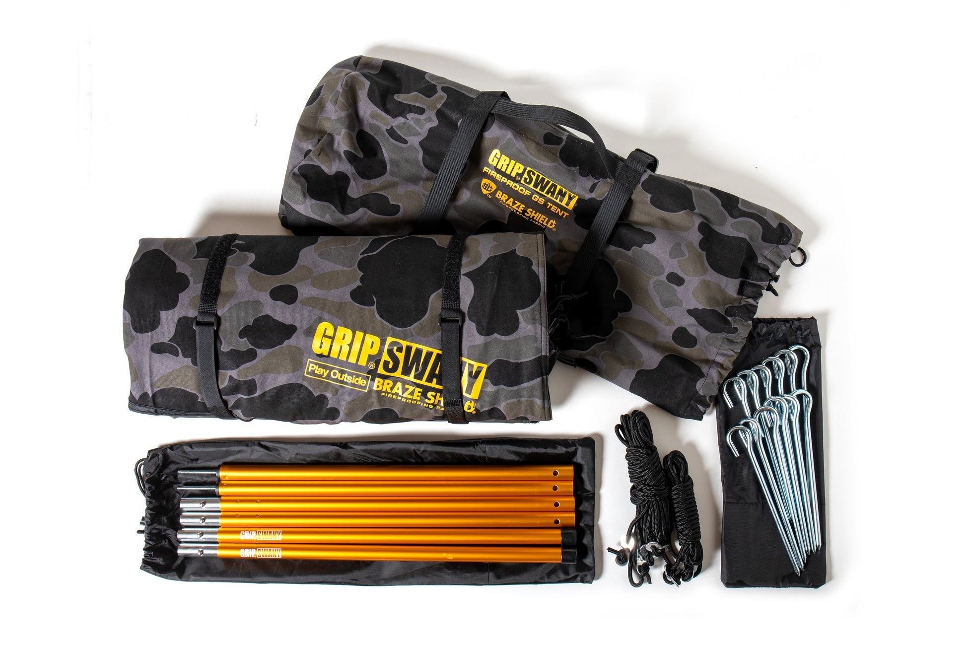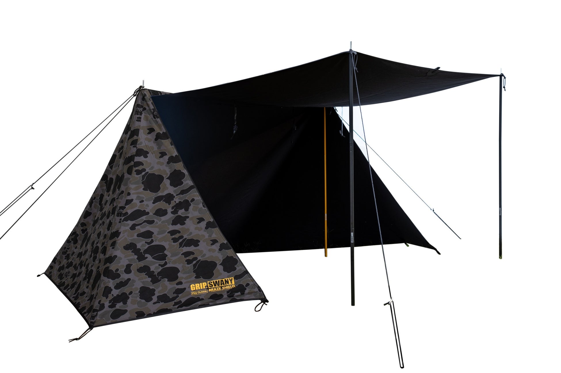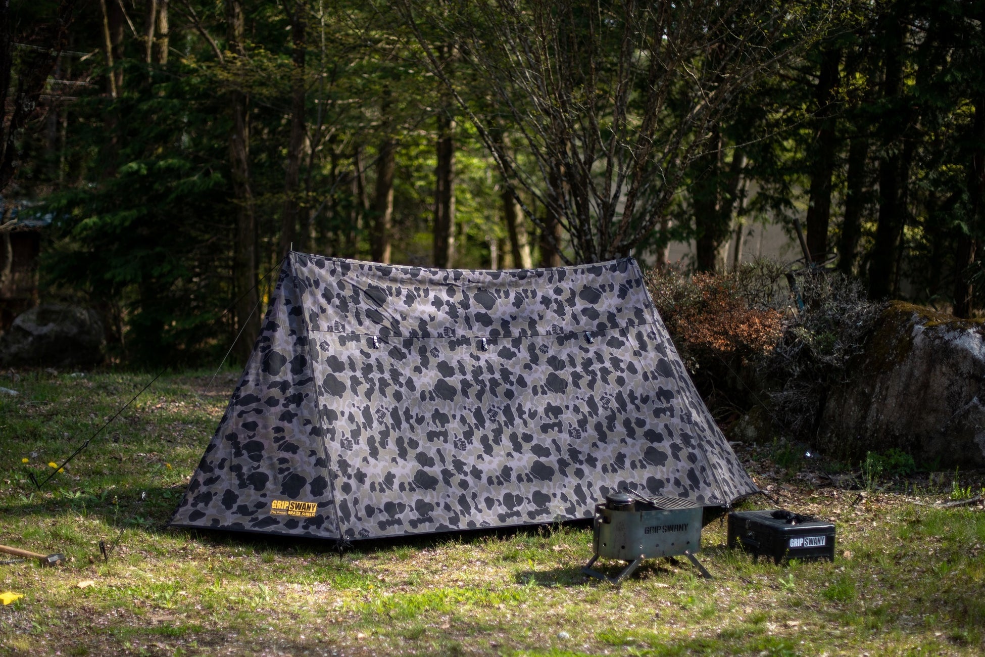 さらに、アパレル同様のパターンを落とし込んだ、ミリタリー難燃生地ブレイズシールドを採用したソロキャンプ用のテントも販売。